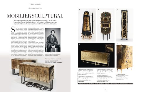 "Des ondes mouvantes sur l’eau, des craquelures précieuses d’un sol séché… le mobilier d’Erwan Boulloud s’inspire de la nature, de l’impact du temps et symbolise la beauté et la richesse qui émanent de la transformation de la matière..."