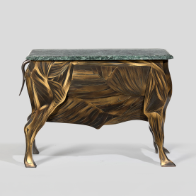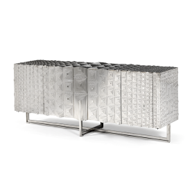 Enfilade en chêne teinté et marqueterie d'inox poli