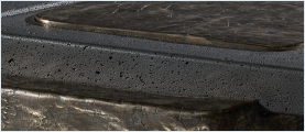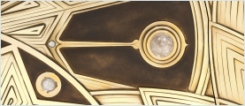 Marqueterie de laiton patiné et poli incrusté de cabochons en cristal de roche.