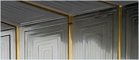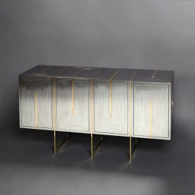 Enfilade en chêne teinté et marqueterie d'inox poli