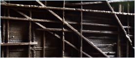 Marqueterie de laiton patiné et poli incrusté de cabochons en cristal de roche.